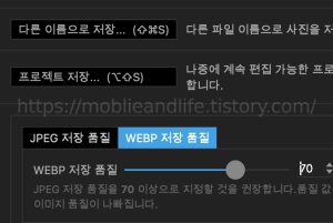 기본적인 편집기능은 모두 갖춰져있으며 개인적으로 가장 만족하는 기능인 'Webp'로 저장이 가능합니다.