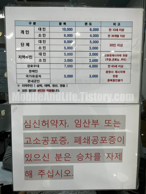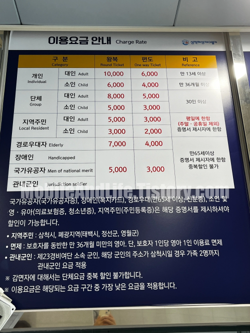 저희는 쏠비치 삼척 리조트에서 제공해 준 할인권을 사용해서 왕복 8,000원에 표를 구매했습니다.