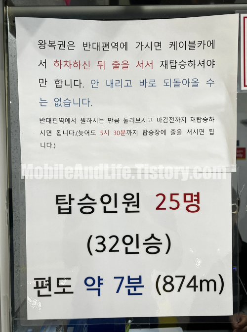왕복권을 구매하셨다면 반대편역에서 내렸다가 재탑승 위치에서 다시 돌아가는 케이블카를 기다려야 합니다. 줄이 엄청 길게 그려져 있는데 그날은 정말 한산했습니다. 장마철에는 주말이라도 사람이 없는 걸 까요?