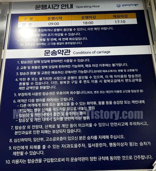 오전 9시부터 오후 6시까지 케이블카와 3층 전망대를 운영하며 매표는 오후 5시까지 가능합니다.