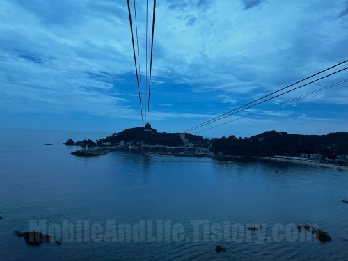 케이블카의 높이는 그다지 높지 않습니다. 저는 고소공포증이 약간 있는데 별 무리 없이 탑승했습니다. 하지만 강한 바람에 흔들리기라도 한다면 무서울 것 같네요... 장마철이라서 하늘에 구름이 가득 찬 관계로 사진이 예쁘게 나오지 않았습니다.